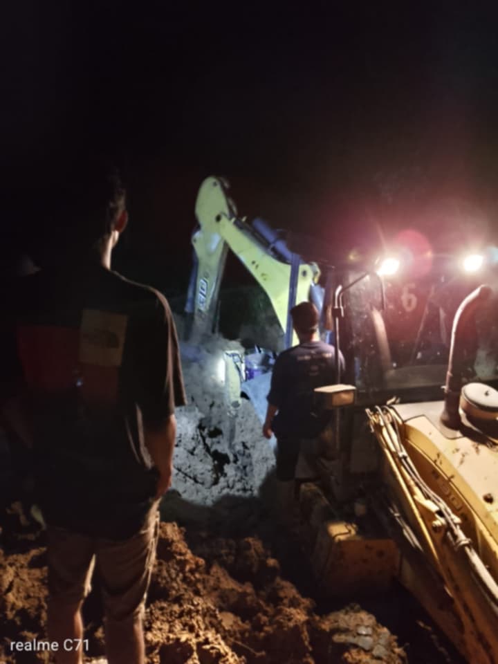 Hingga malam ini alat berat dari PT. MPA masih bekerja guna membuka jalan lintas di Kecamatan Ulu Talo yang terdampak longsor.