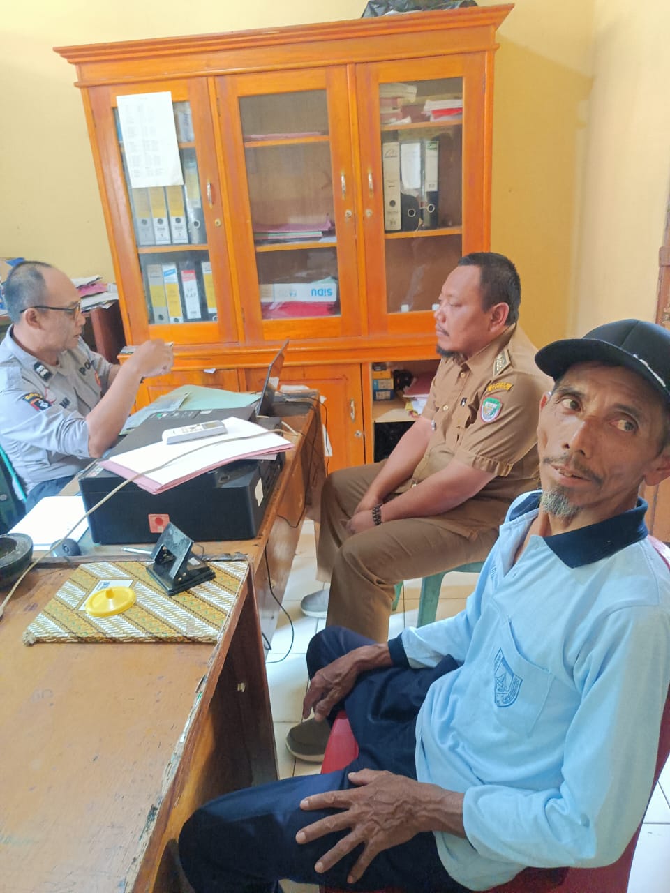 Di dampingi Kepala Desa Margo Sari, Sugiyarto, korban pencurian motor dalam rumah lapor ke Polsek Talo.
